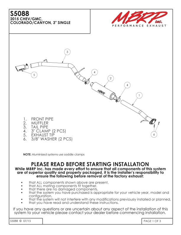 - Heavy Duty Aluminized Steel, Fully Sealed Tubing for Rust Resistance. Bolt-on Installation. MBRP Signature Styling and Sound. Hardware Included.