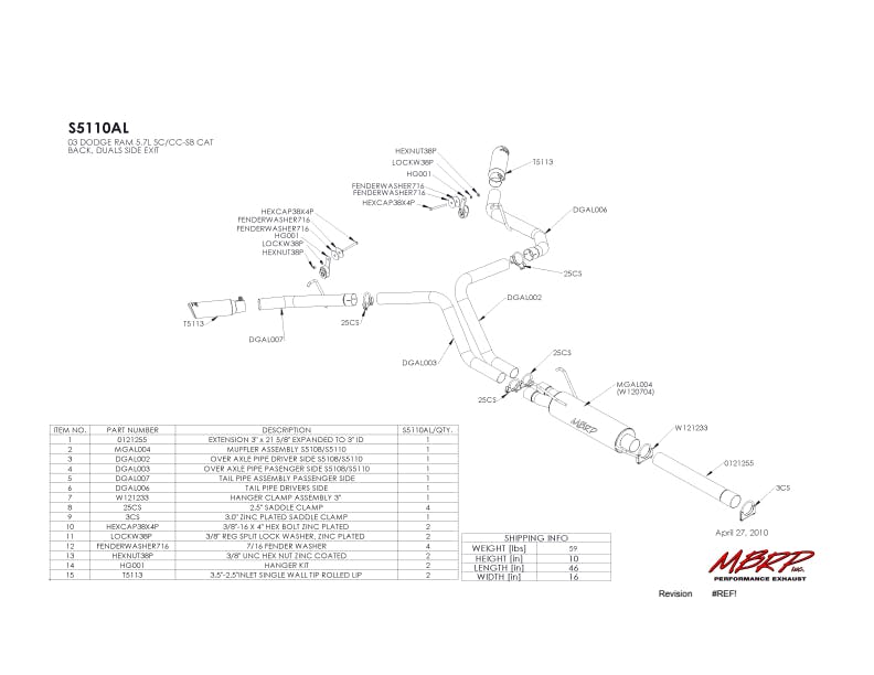 3in. Cat-Back. 2.5in. Dual Split Side Exit. Aluminized Steel.