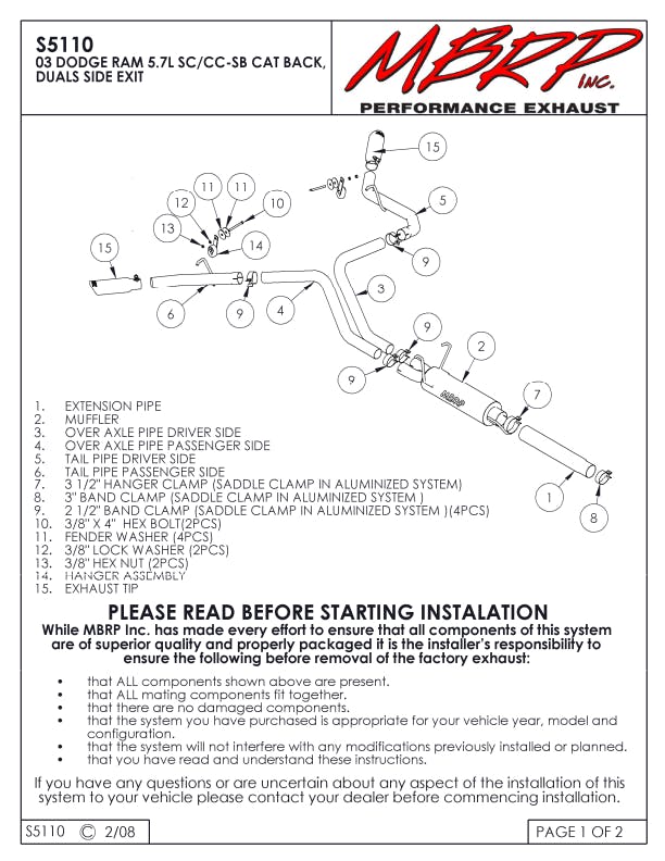 - Heavy Duty Aluminized Steel, Fully Sealed Tubing for Rust Resistance. Bolt-on Installation. MBRP Signature Styling and Sound.